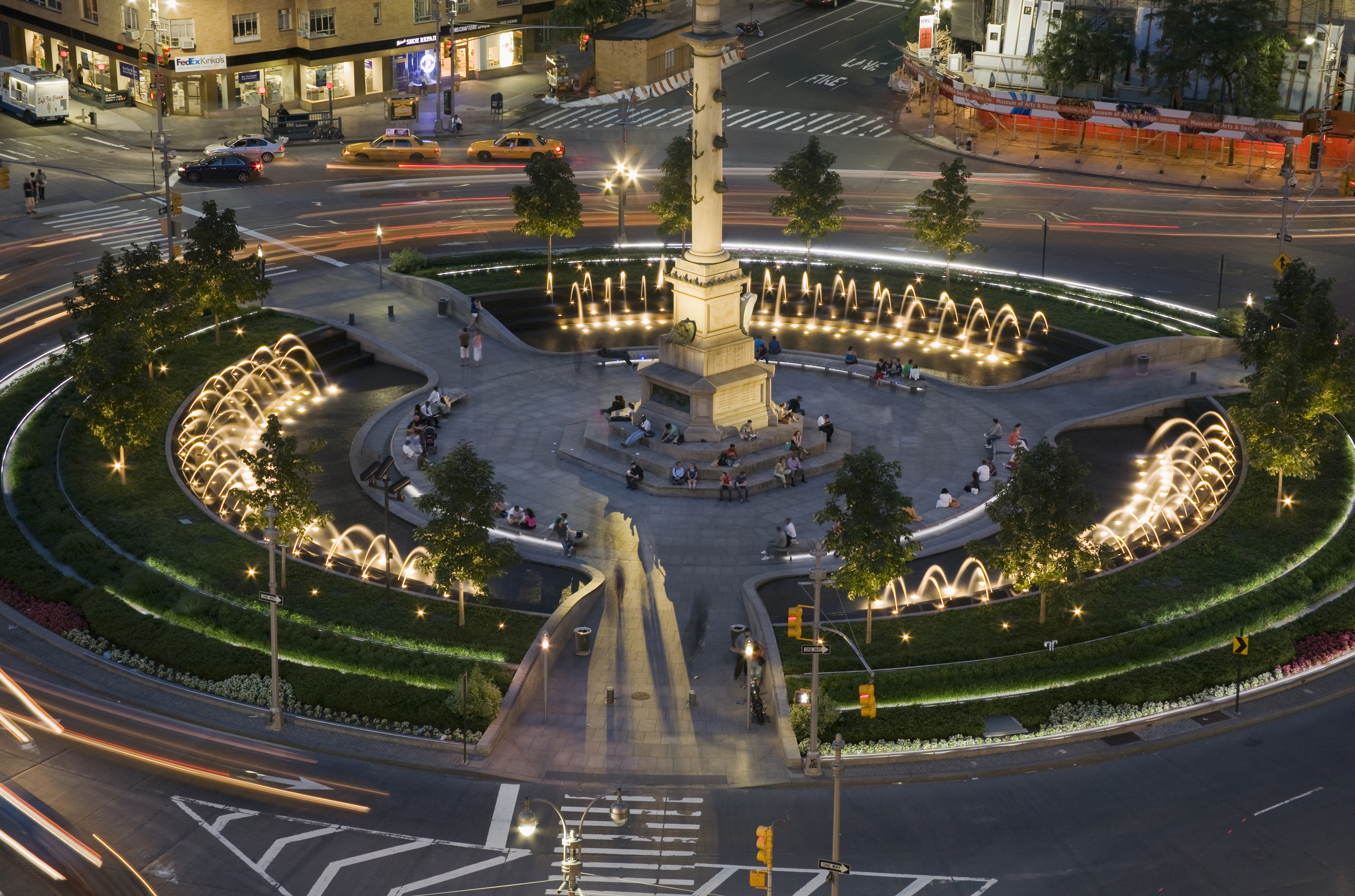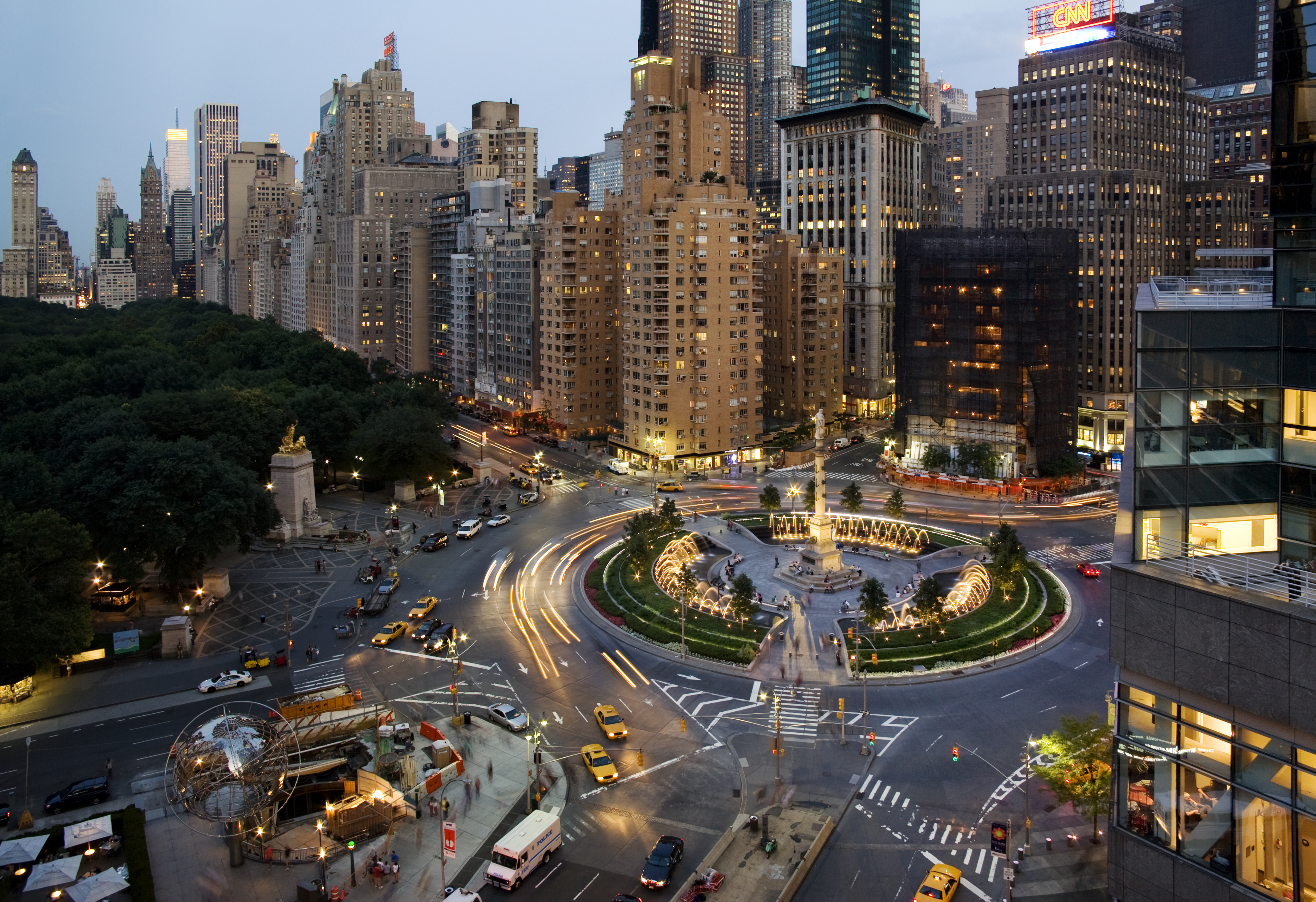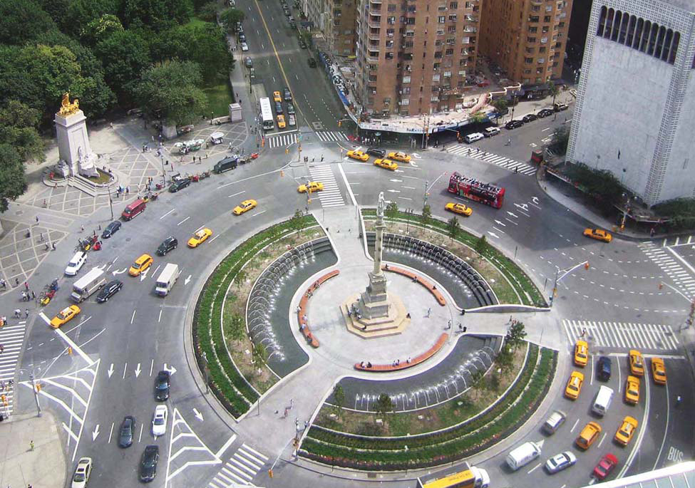 Despite the plaza’s new popularity, its careful design allows it to function first as a transportation resource that can move 60,000 cars per day through a complex intersection. With a vista that organizes districts above and below, Columbus Circle symbolically, socially, culturally, and programmatically makes a difference in the urban landscape.