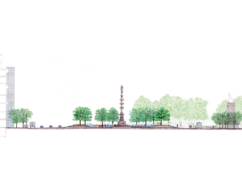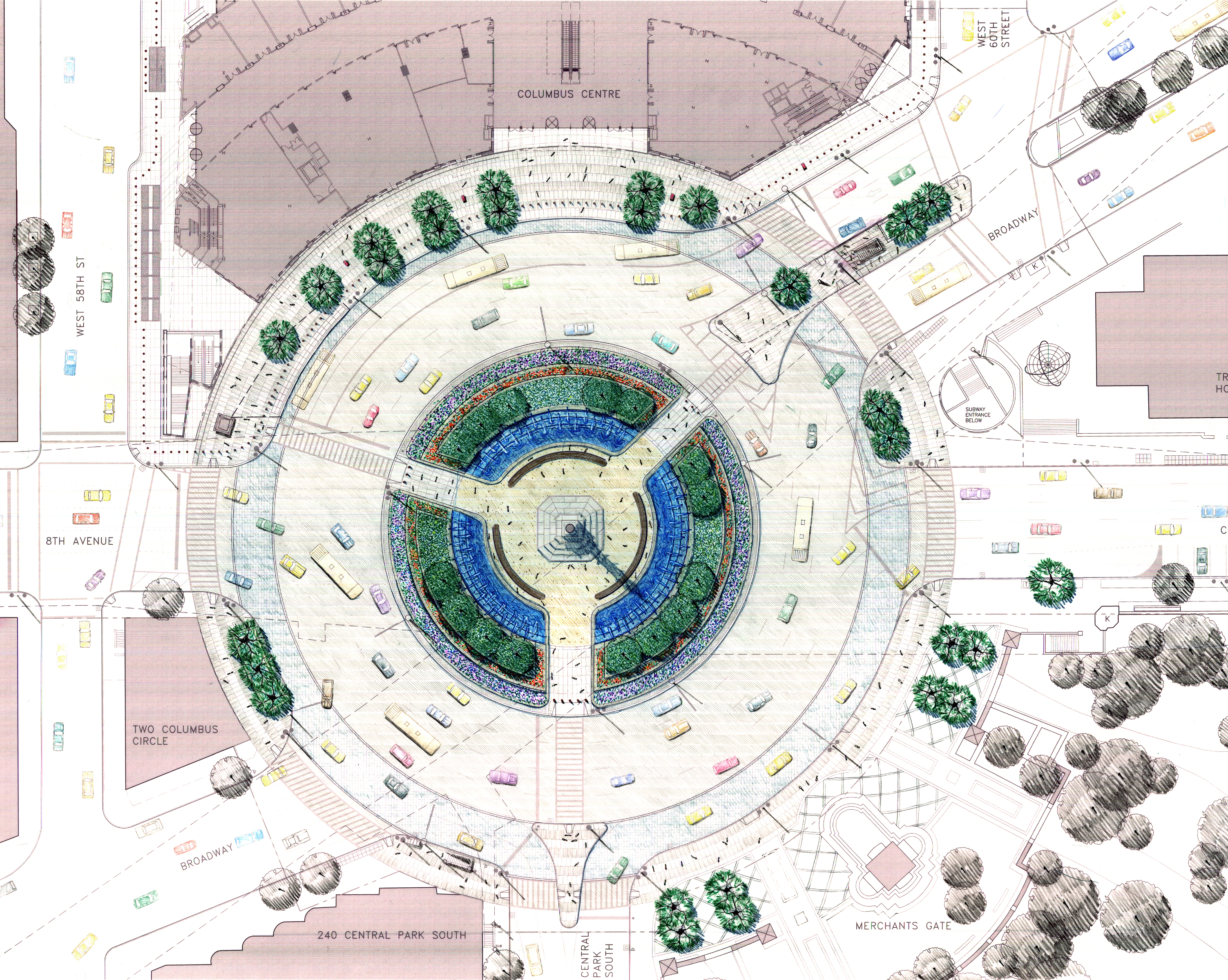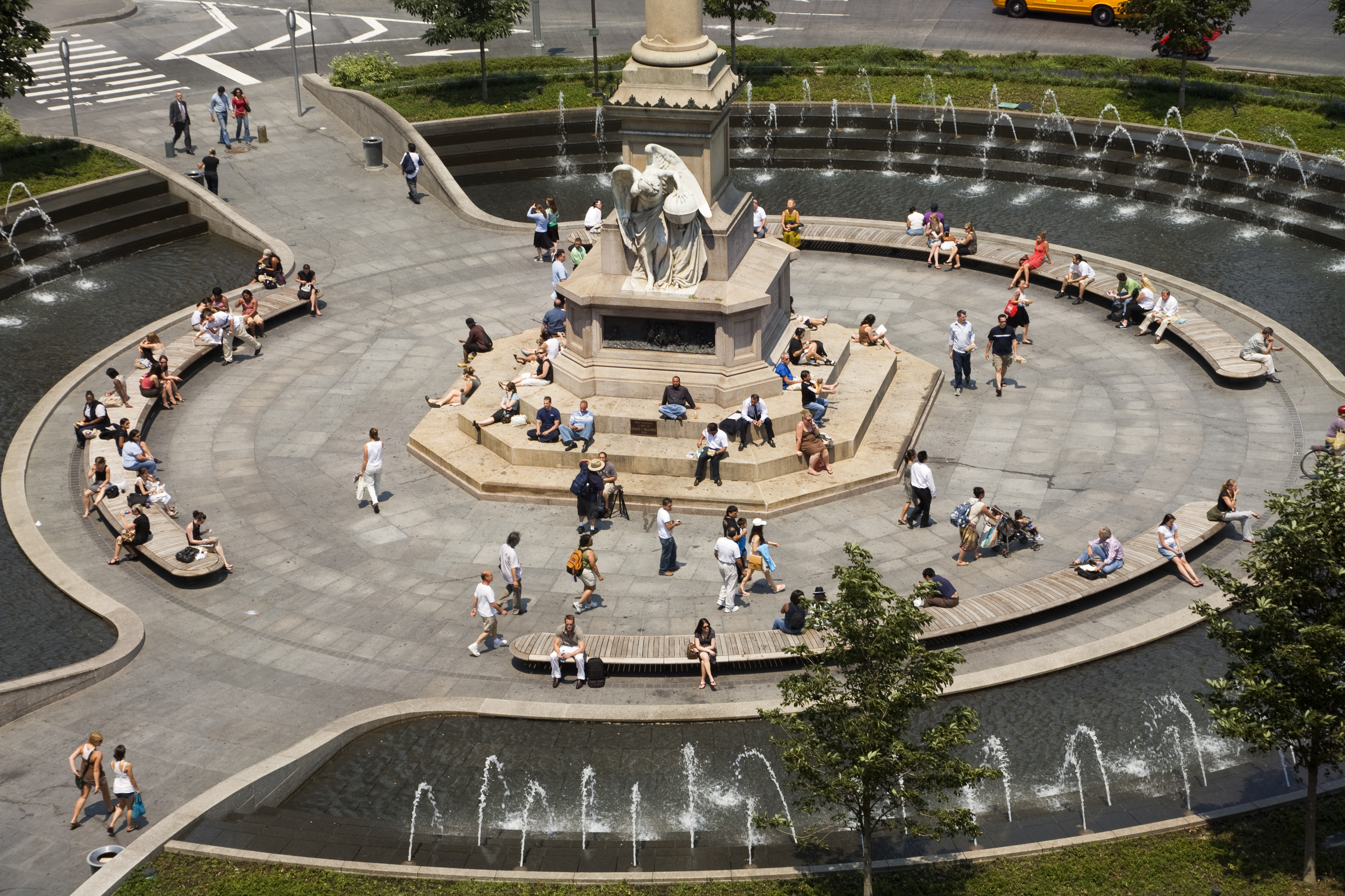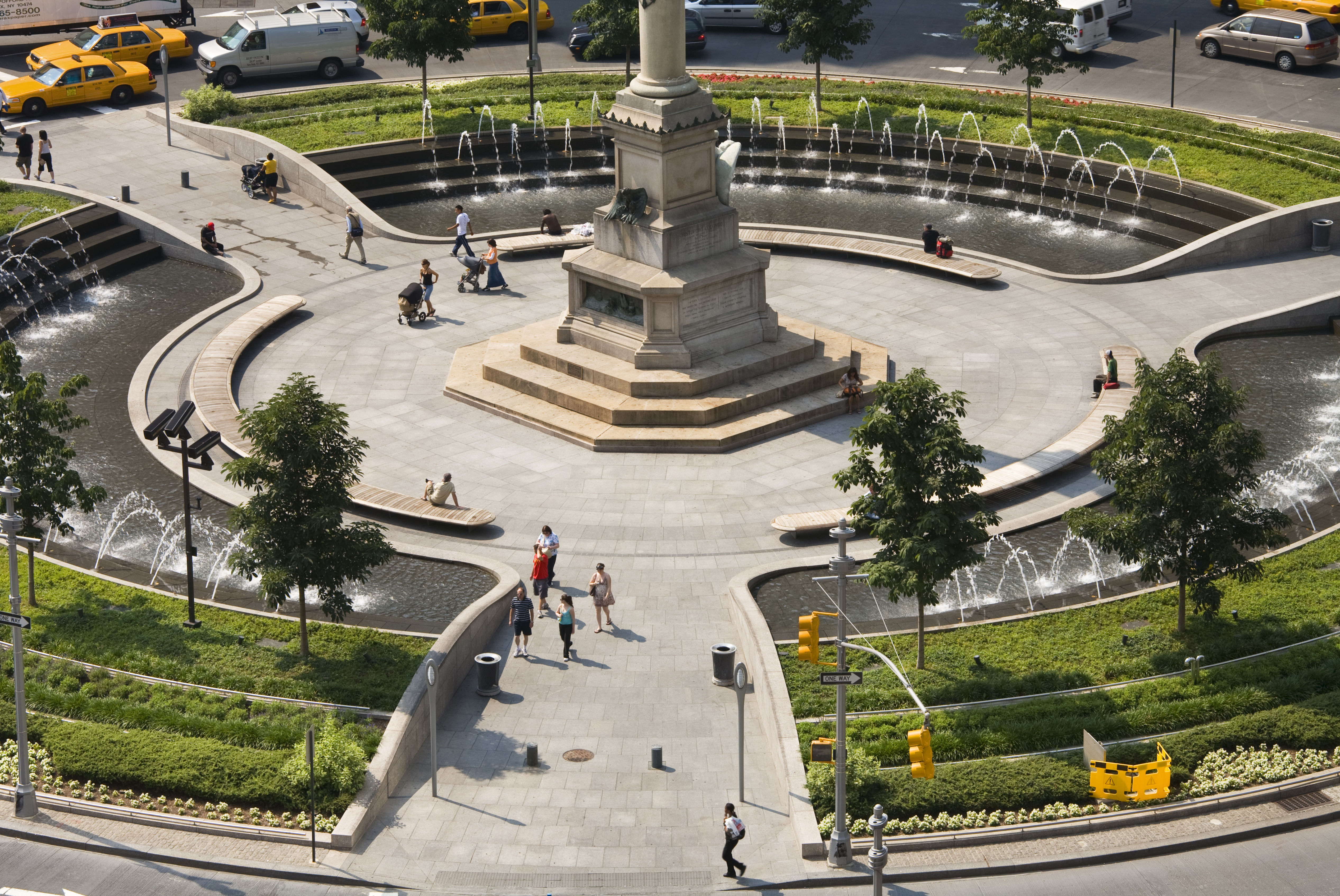Despite the plaza’s new popularity, its careful design allows it to function first as a transportation resource that can move 60,000 cars per day through a complex intersection. With a vista that organizes districts above and below, Columbus Circle symbolically, socially, culturally, and programmatically makes a difference in the urban landscape.