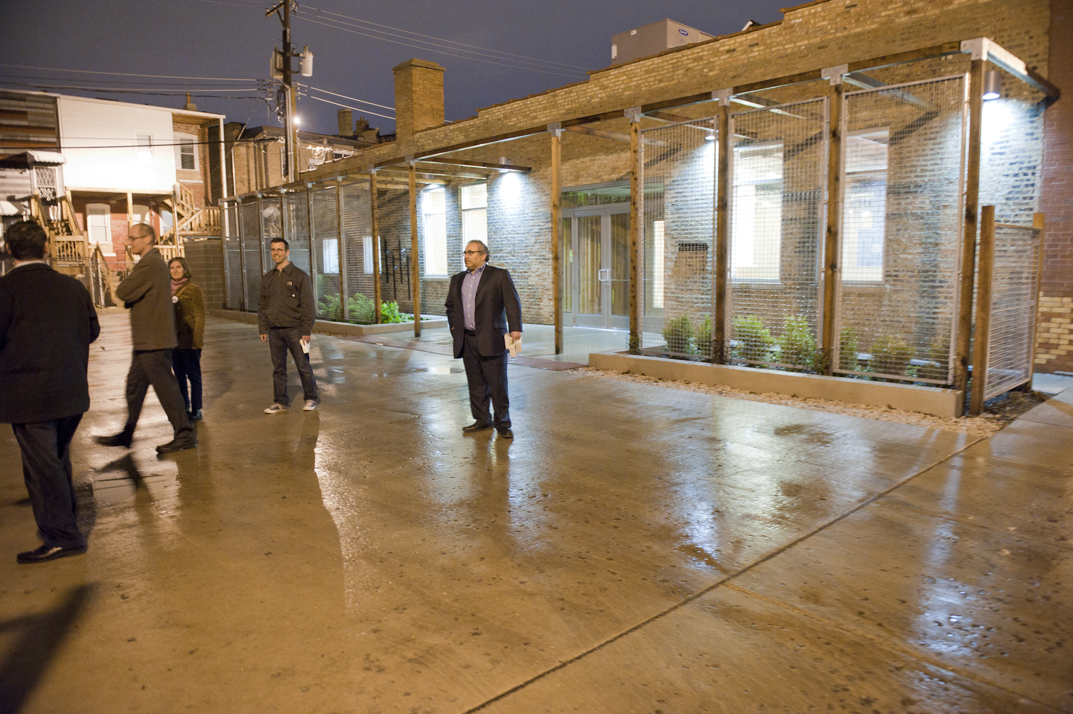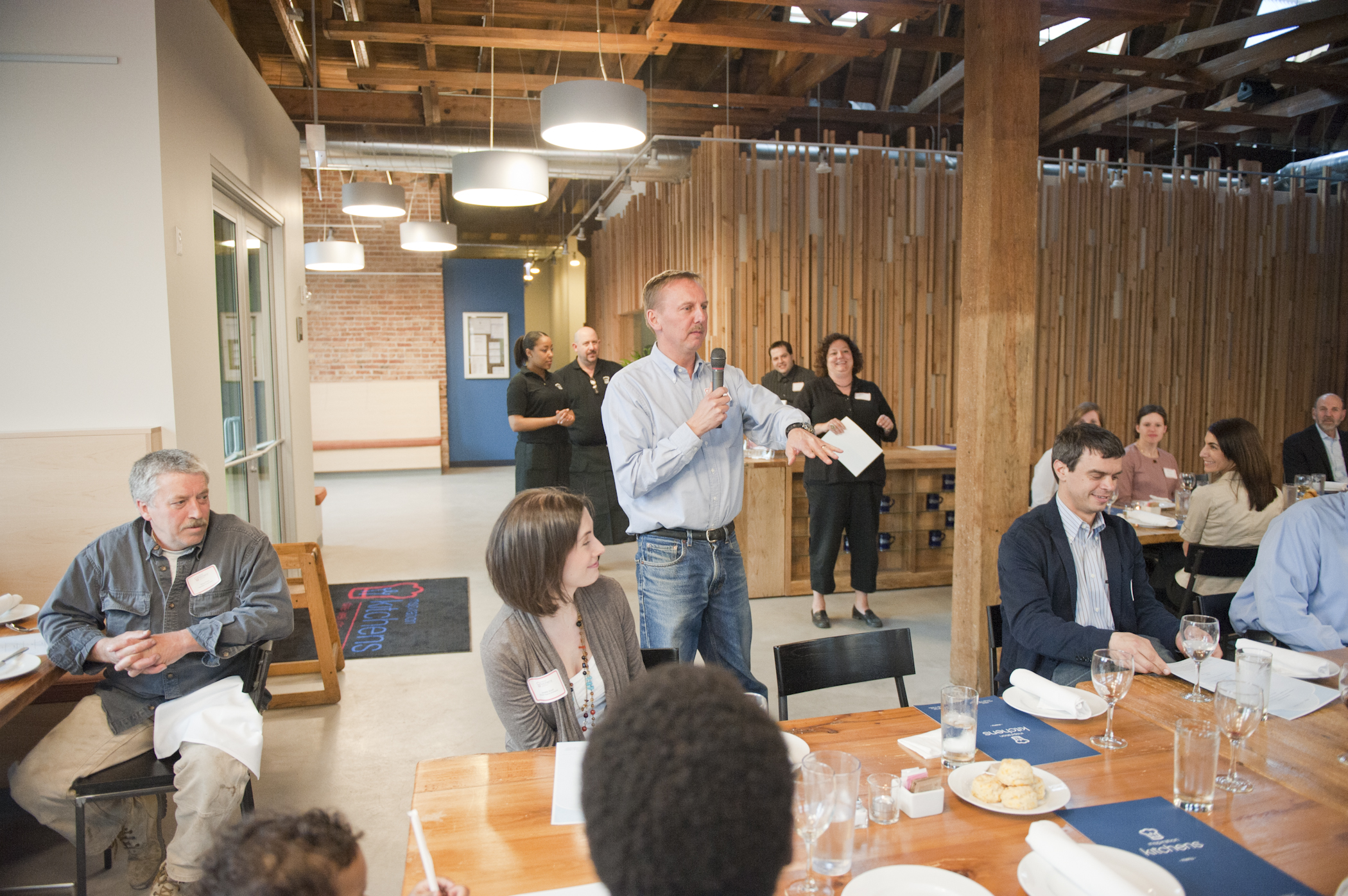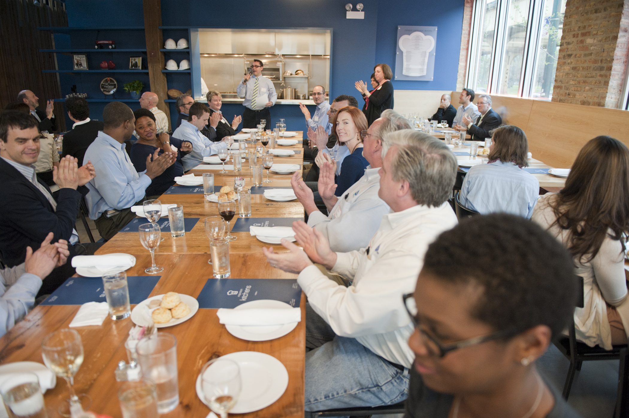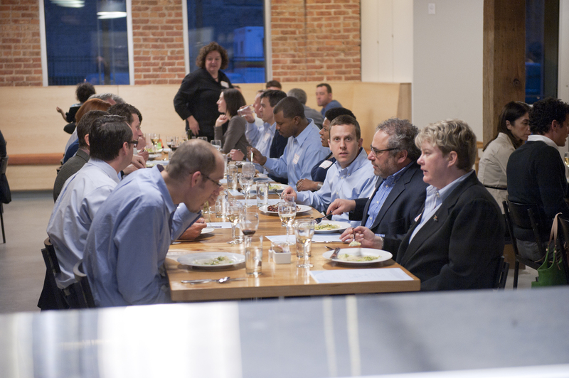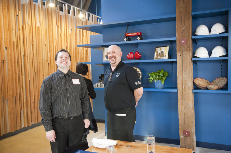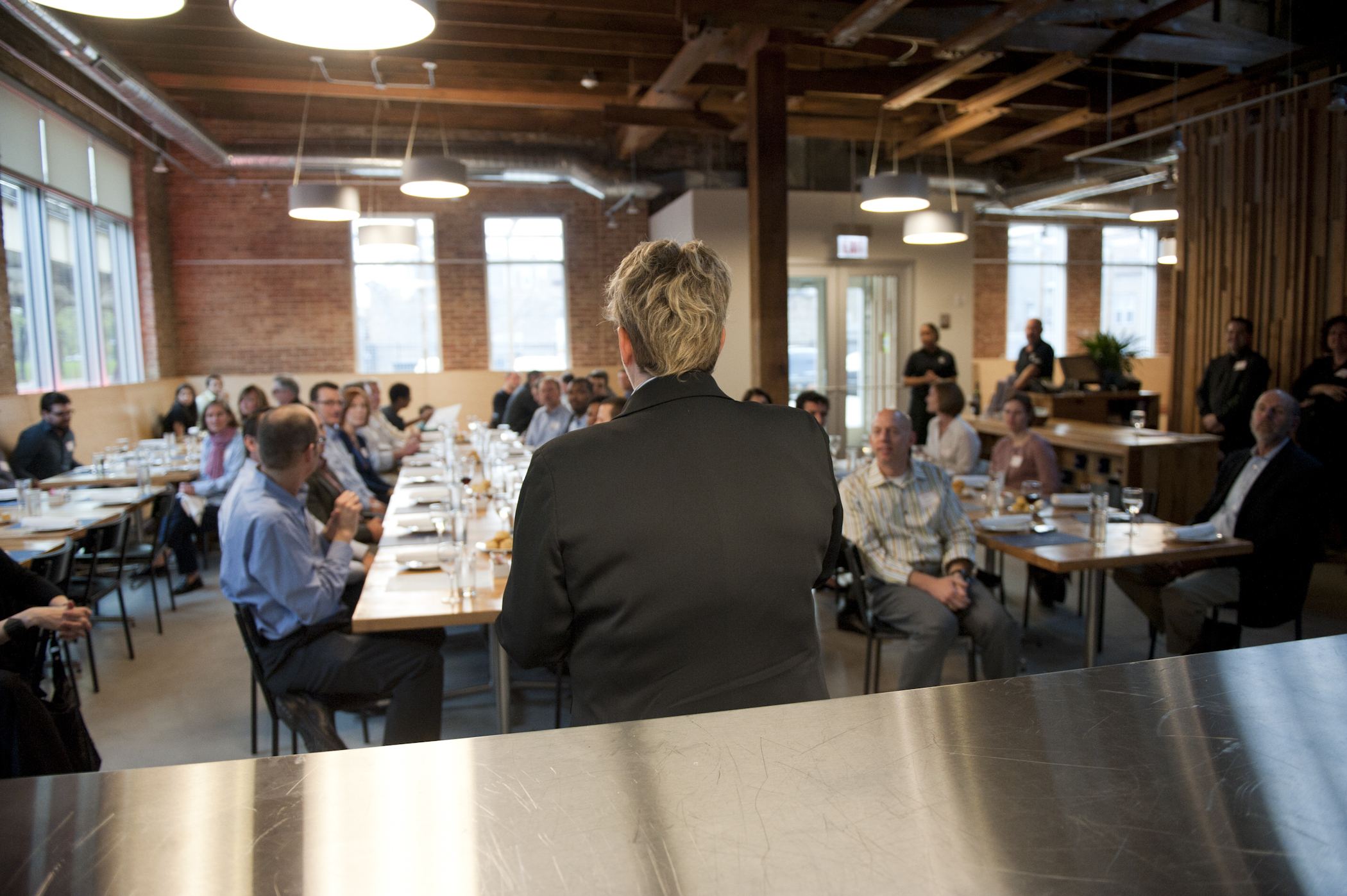The restaurant, kitchen, and offices are housed in a 7,315-square-foot former factory next to an elevated rail station. The design features a light and airy interior and employs a wide range of energy-efficient elements, including a solar thermal hot water system. A large front window connects diners to the street, and a garden onsite and nearby community garden provide fresh produce for meals.