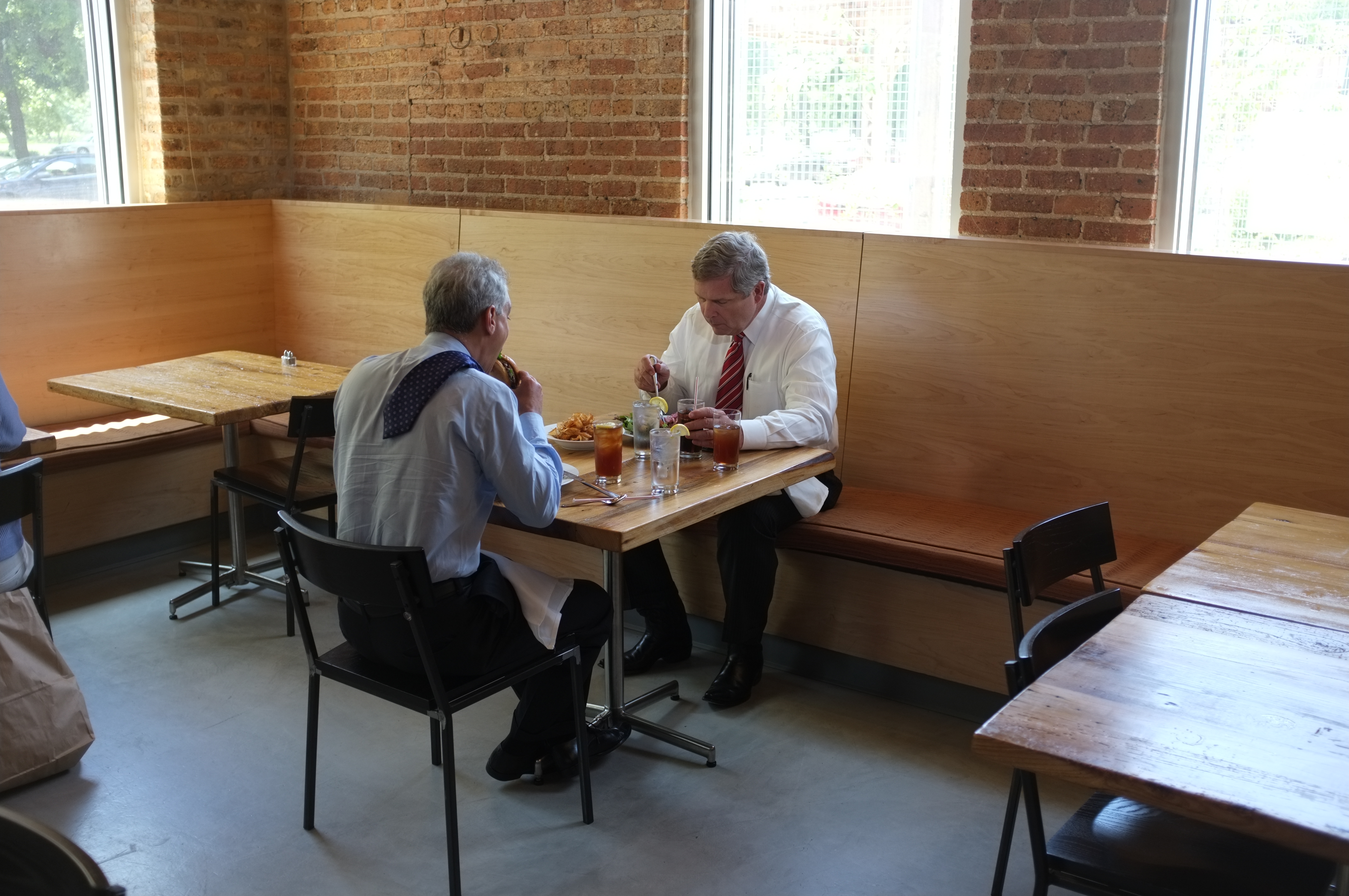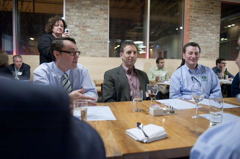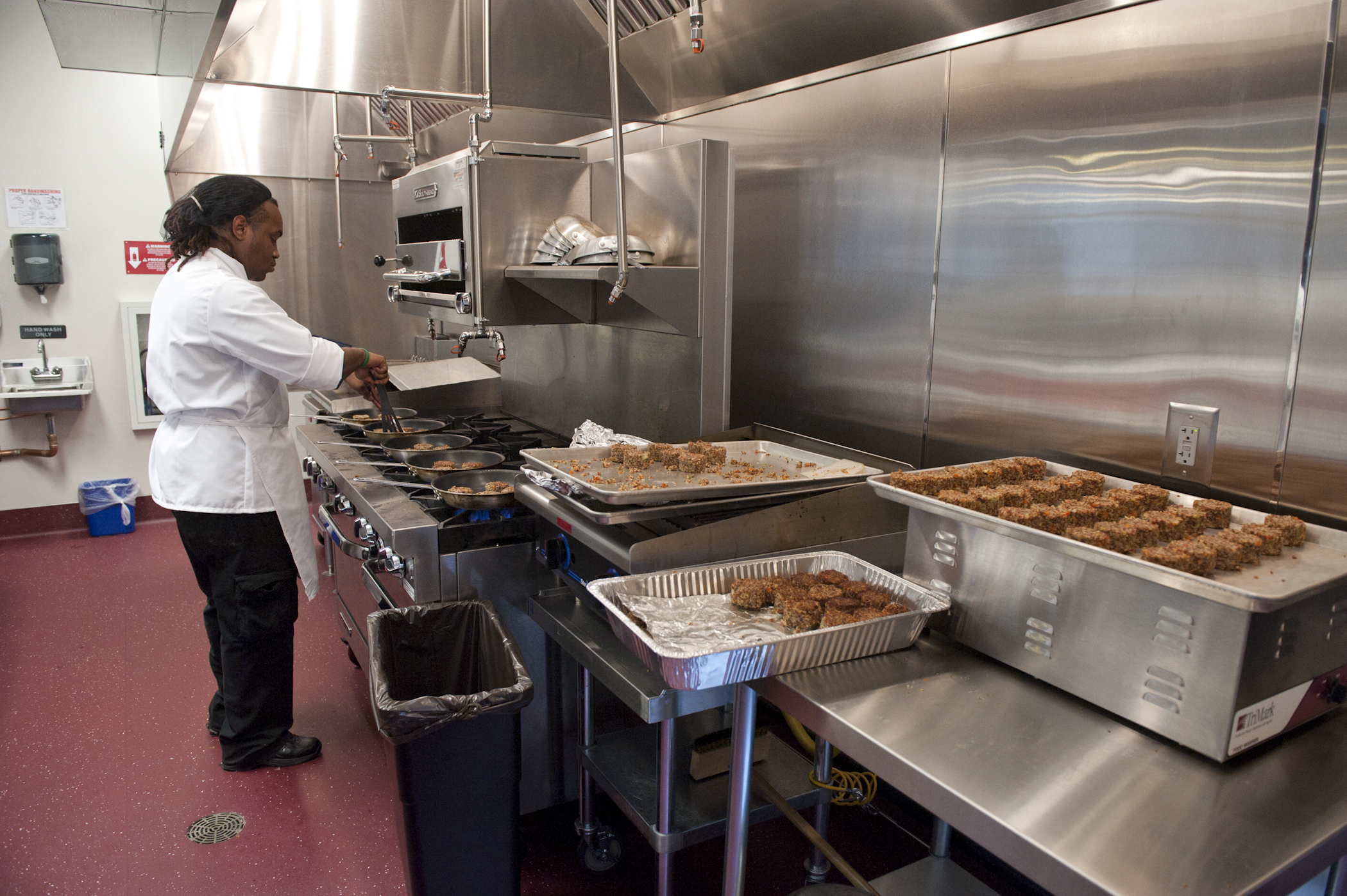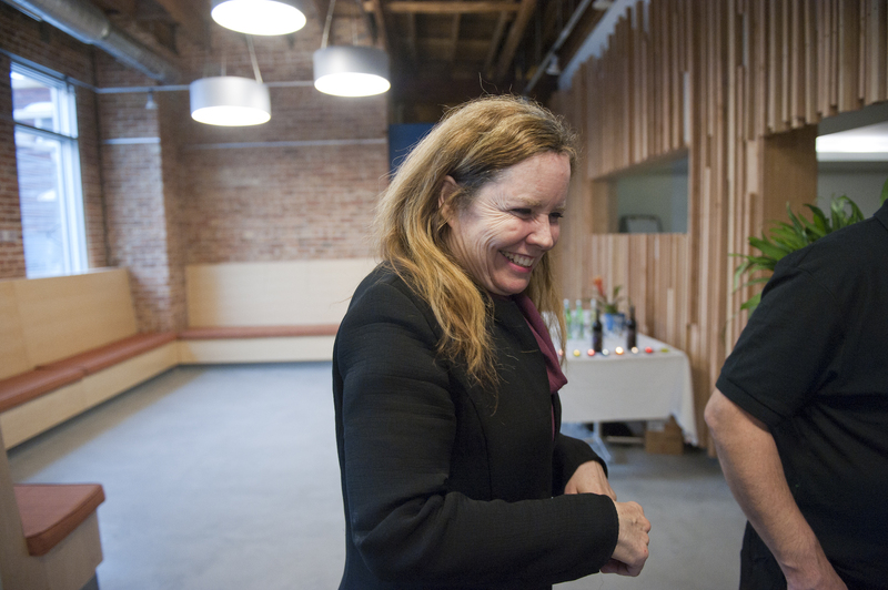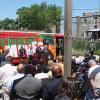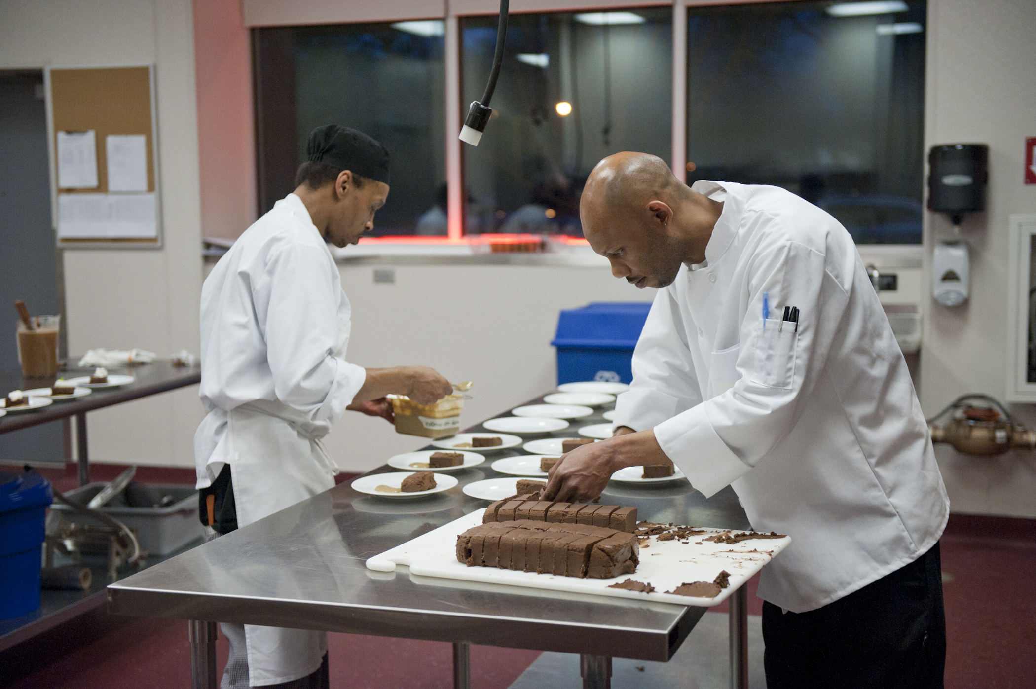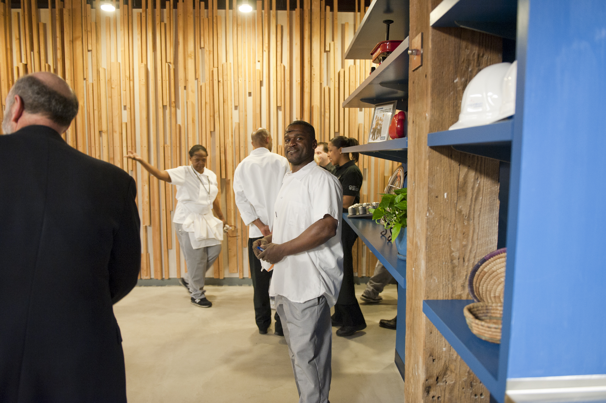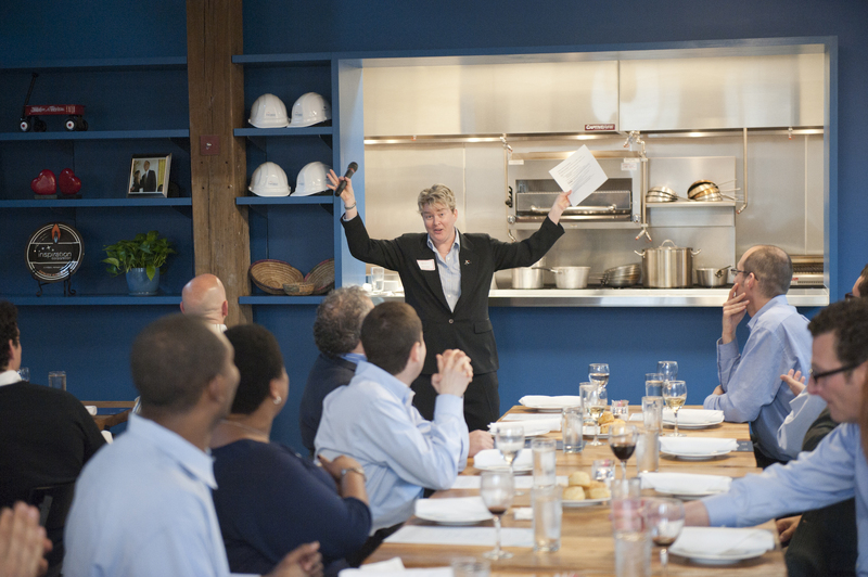 The restaurant, kitchen, and offices are housed in a 7,315-square-foot former factory next to an elevated rail station. The design features a light and airy interior and employs a wide range of energy-efficient elements, including a solar thermal hot water system. A large front window connects diners to the street, and a garden onsite and nearby community garden provide fresh produce for meals.