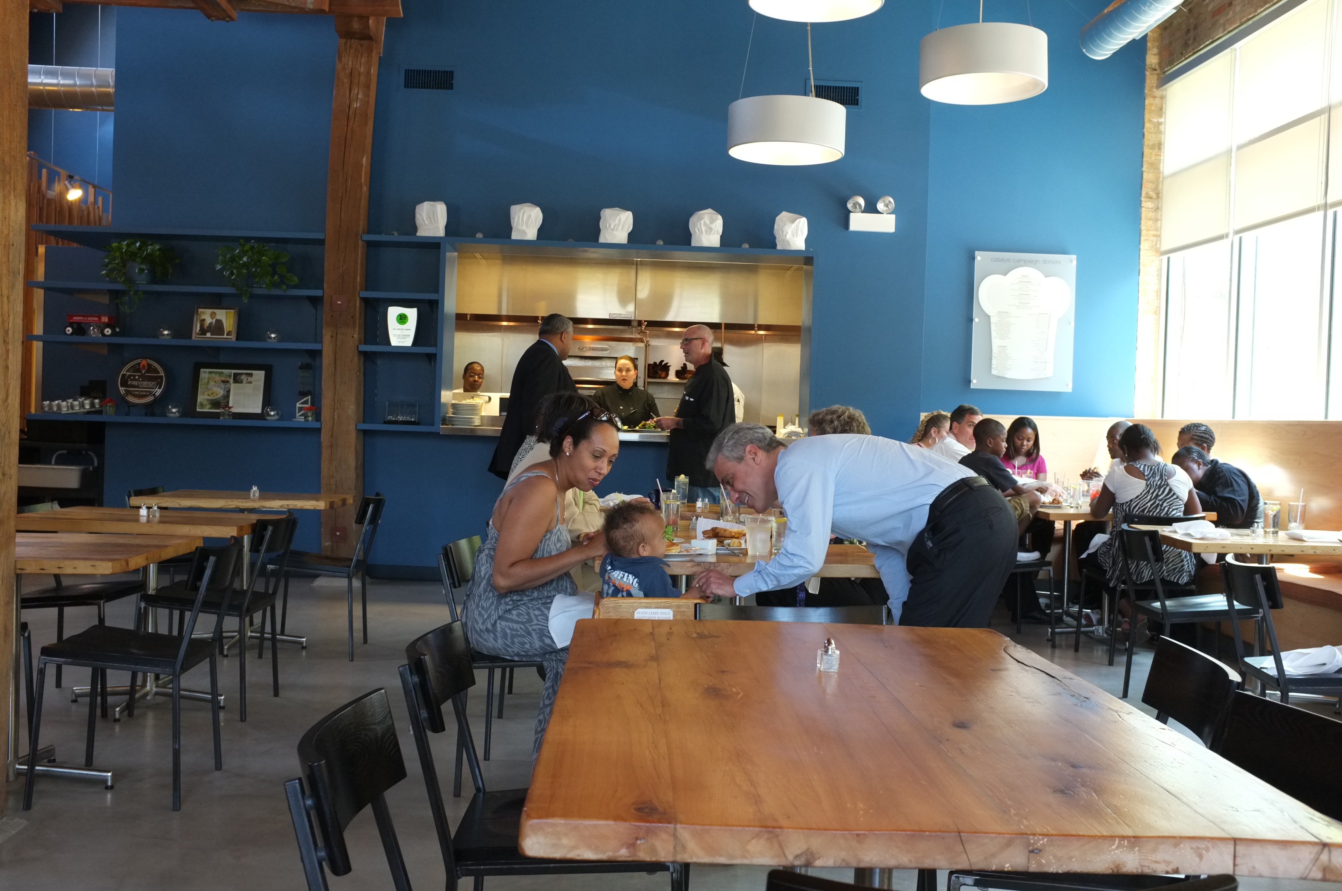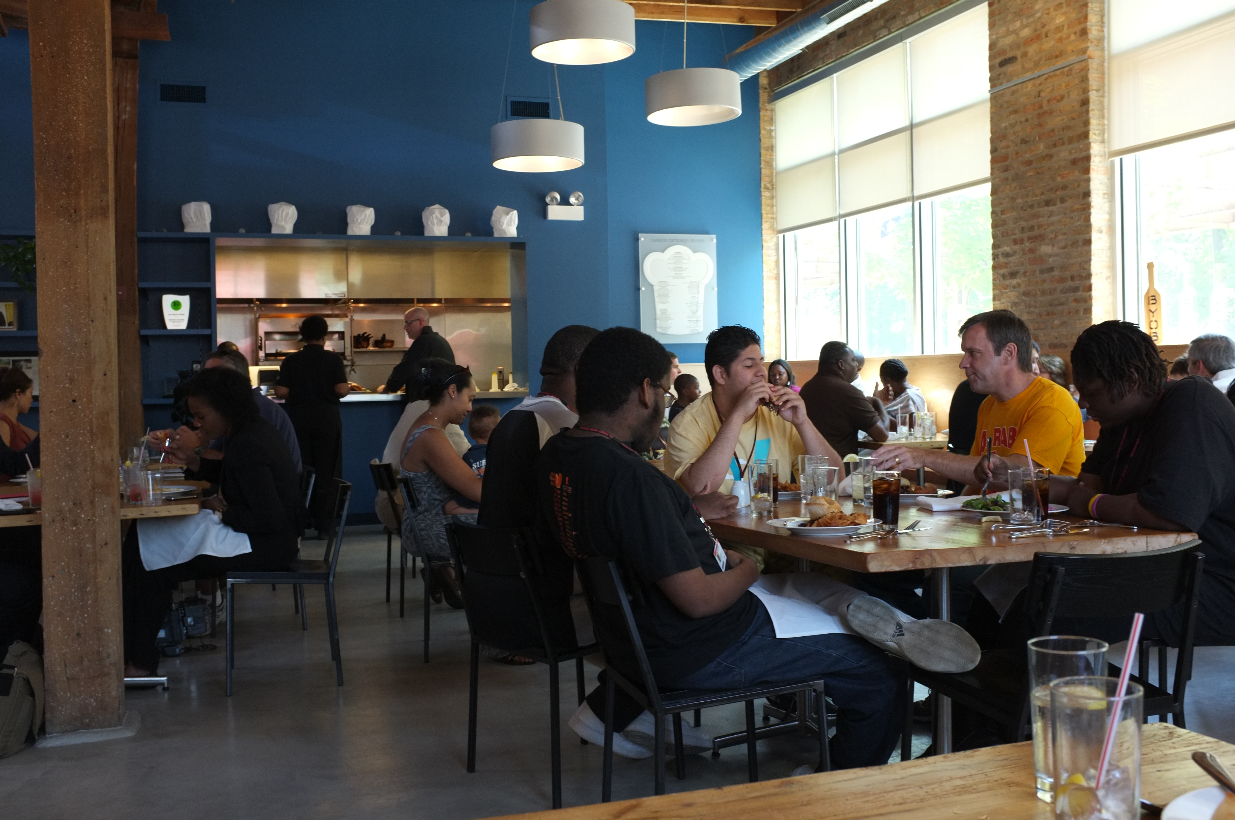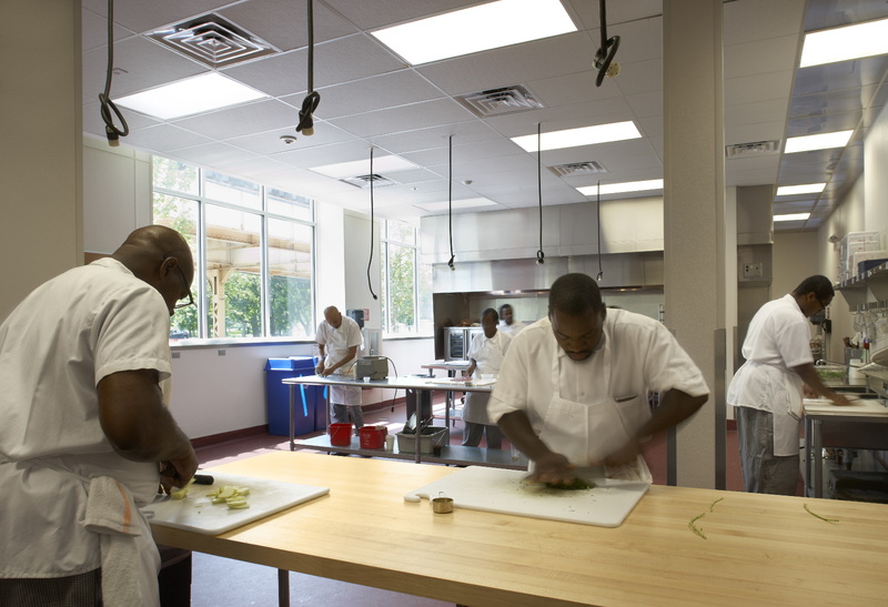 Inspiration Kitchens-Garfield Park (IKGP) repurposed a former factory in one of Chicago’s poorest neighborhoods into a restaurant. The fresh, healthy food in the 80-seat restaurant is prepared by students in IKGP’s award-winning food service training program, which provides a life-changing opportunity and counseling and support services for area residents struggling with poverty and homelessness. The restaurant also offers vouchers for free meals to local low-income residents.