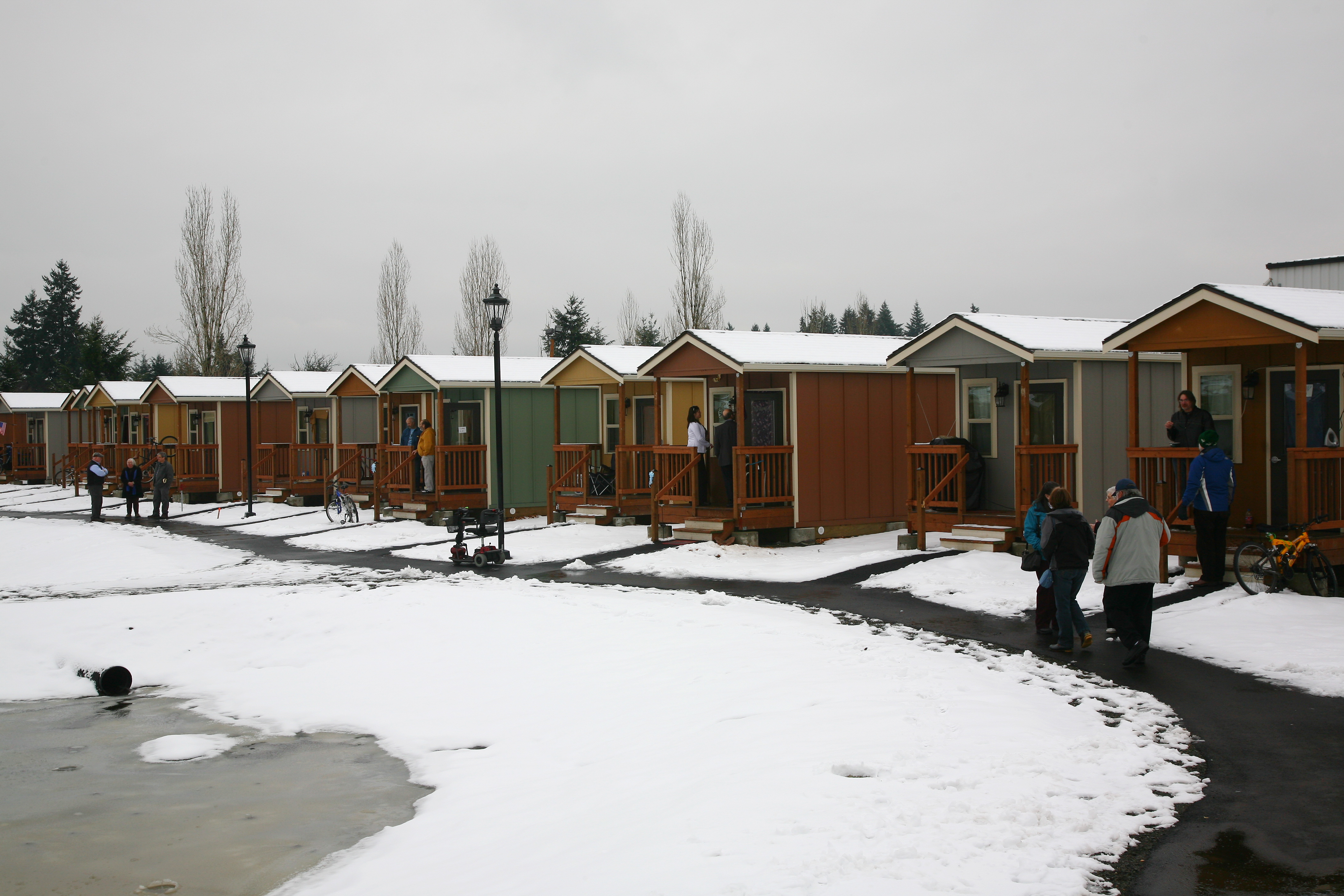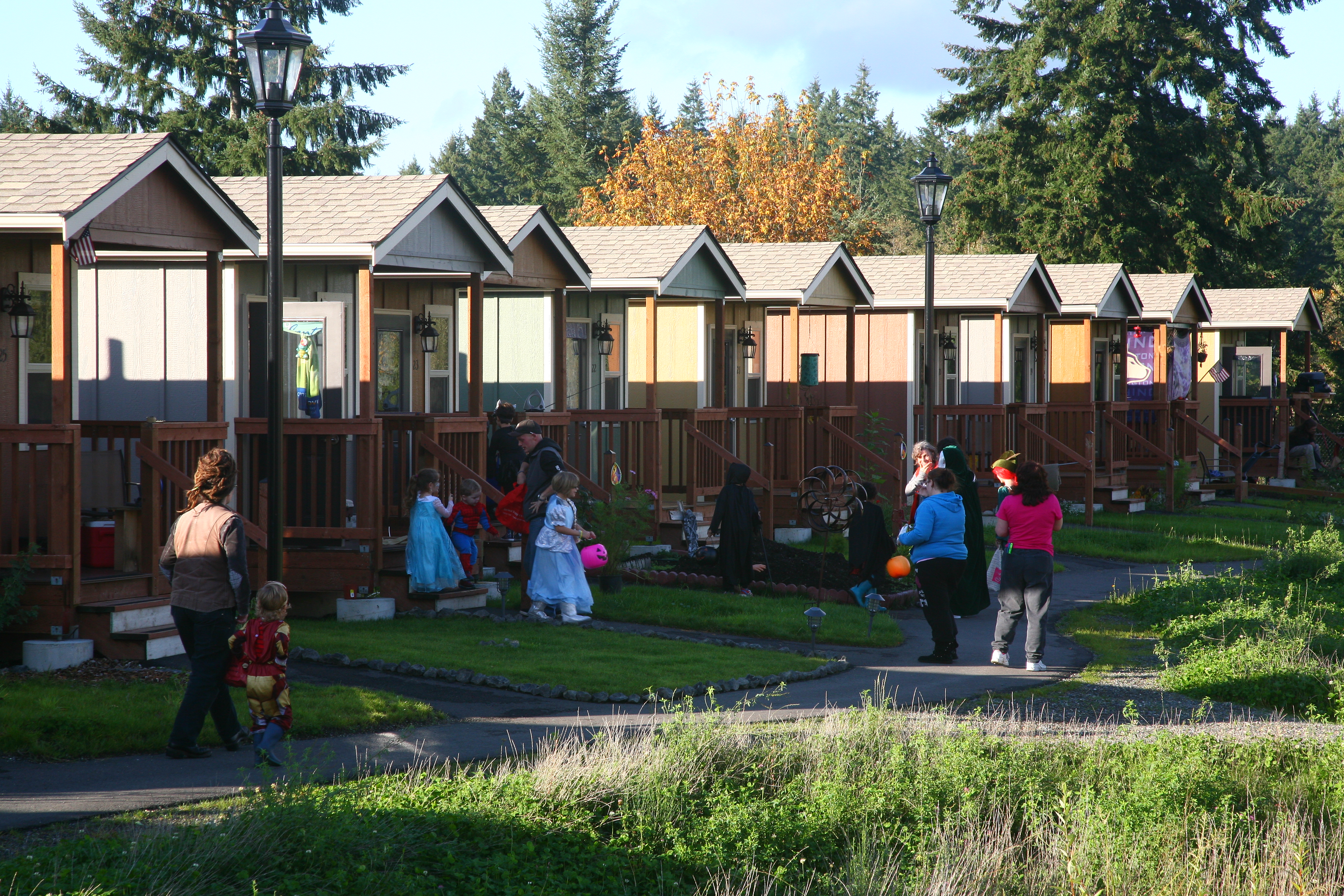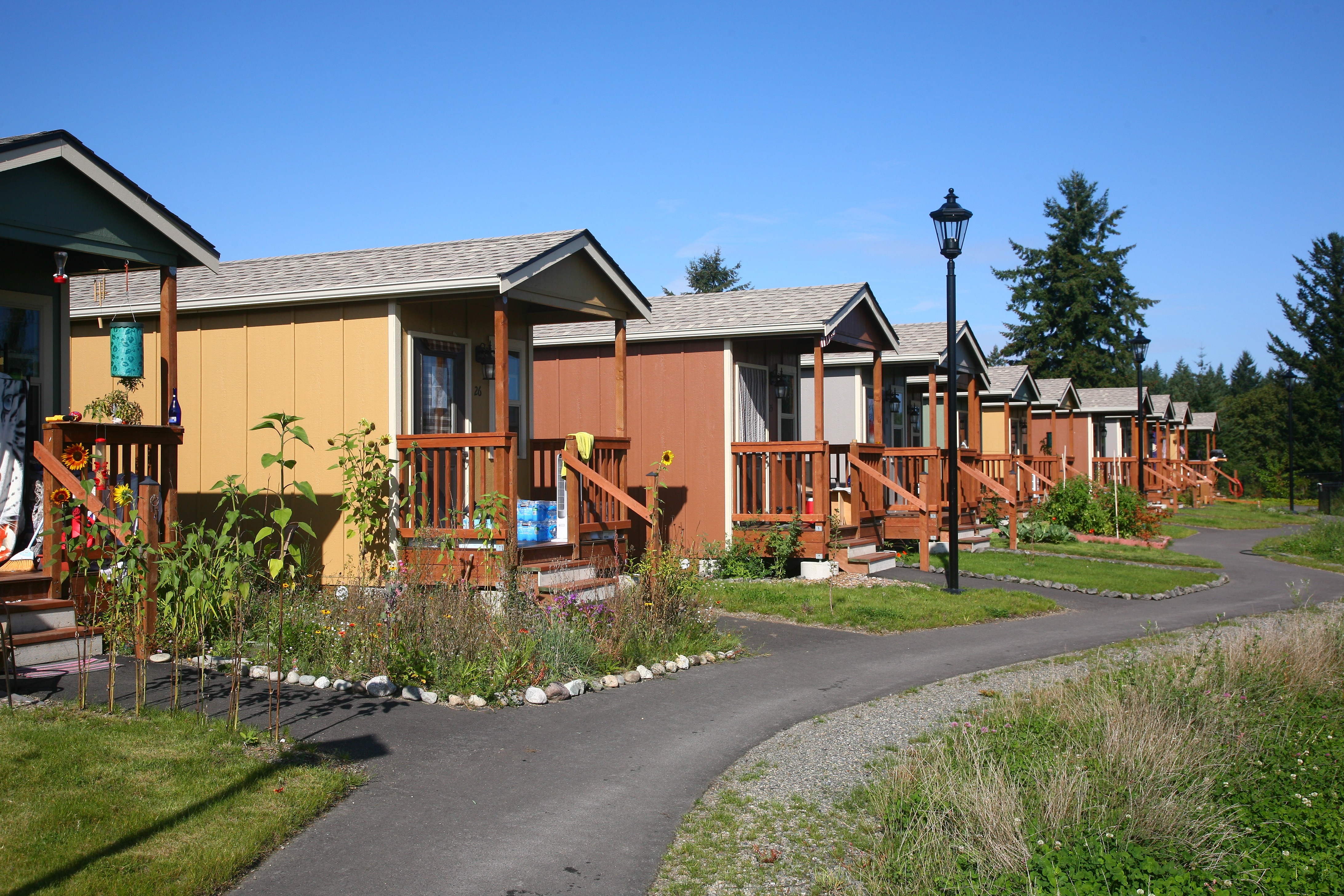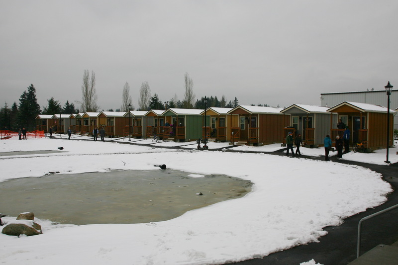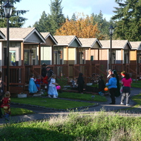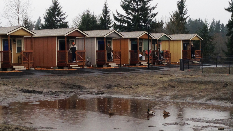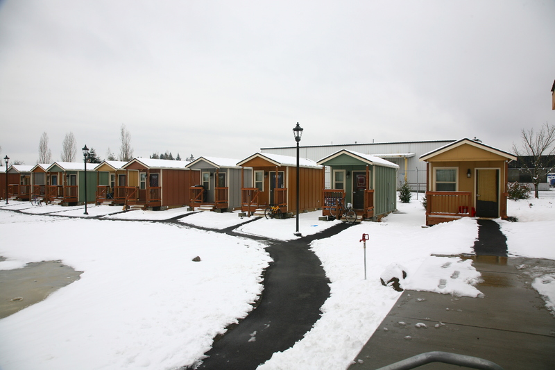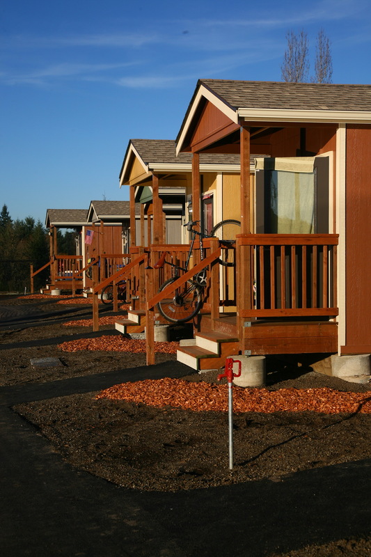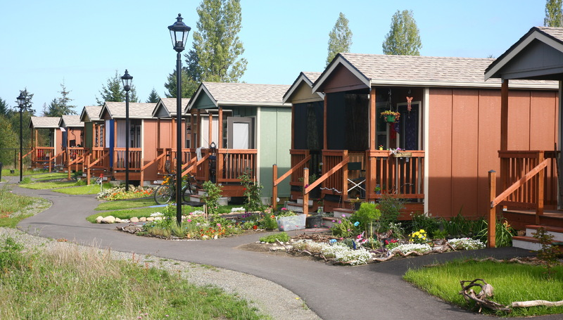 The village emerged from a self-governing tent community that formed in 2007 as a protested against an anti-homeless city ordinance. After the City of Olympia threatened to remove the camp, a local church offered to host the community on its grounds. Over the next seven years, Camp Quixote, as the tent community was called, moved from site to site among local churches with the help of Panza, a nonprofit formed to support Camp Quixote and, eventually, help develop a permanent home for its residents. The “tiny house” idea emerged from a series of workshops with camp residents and Panza members.