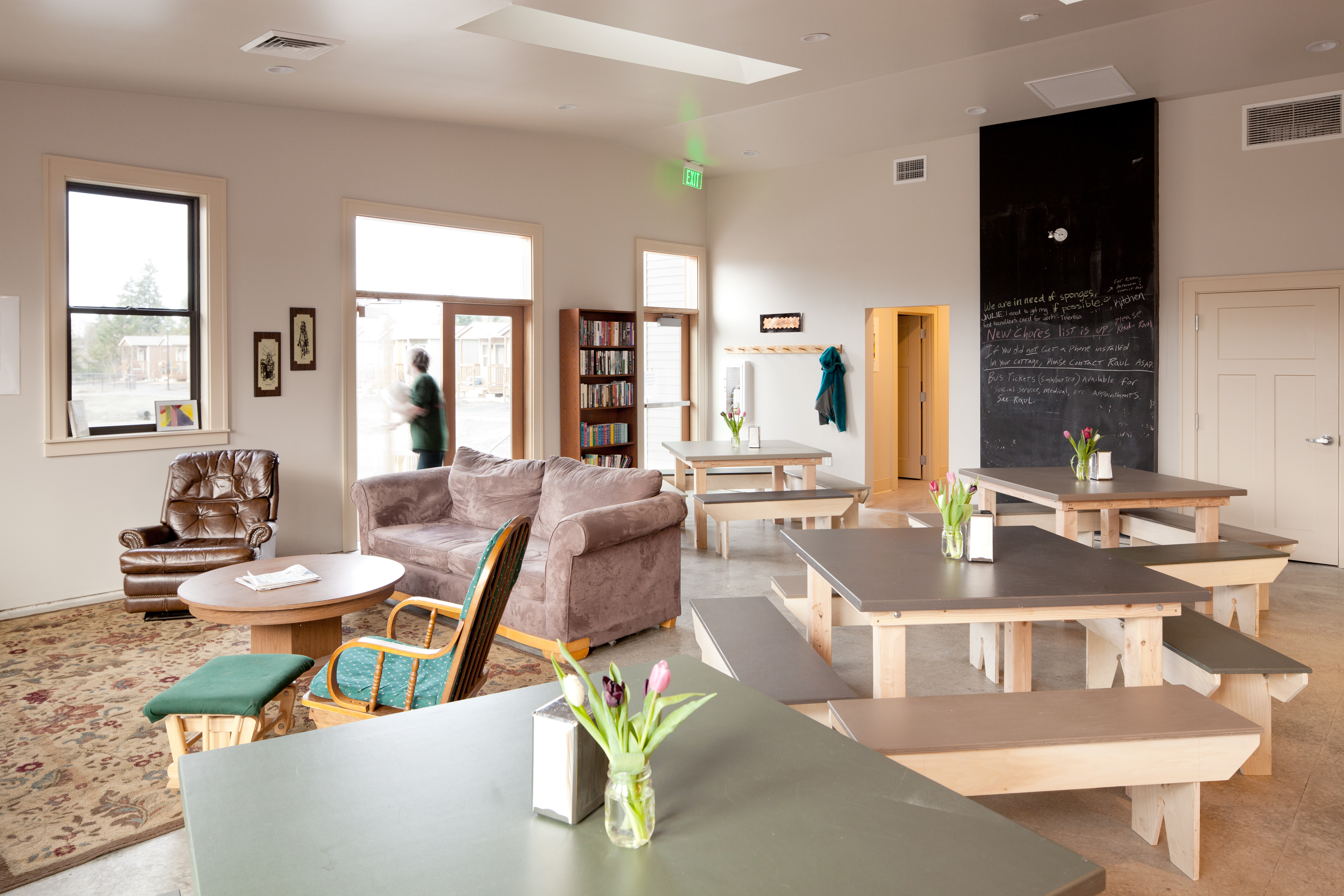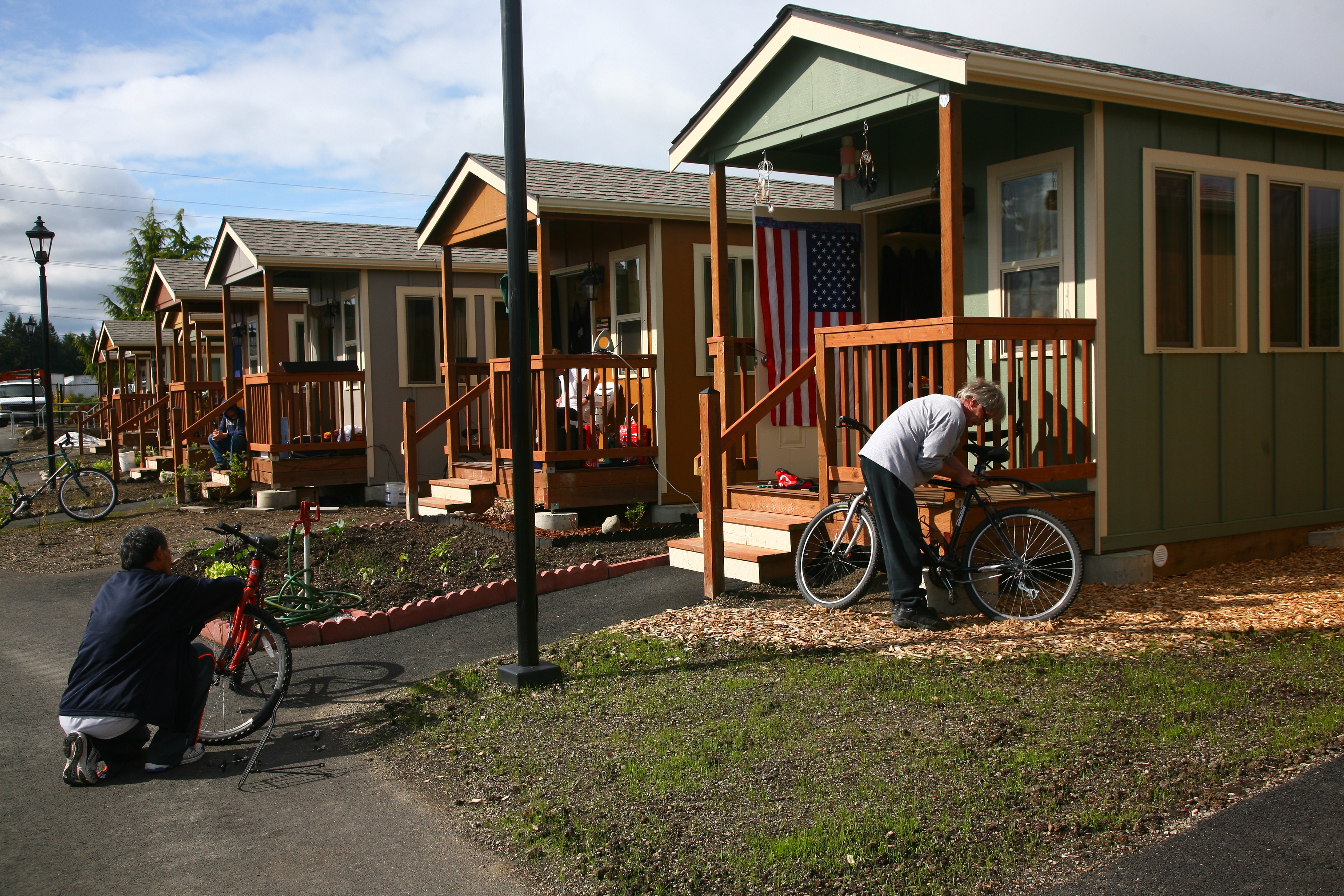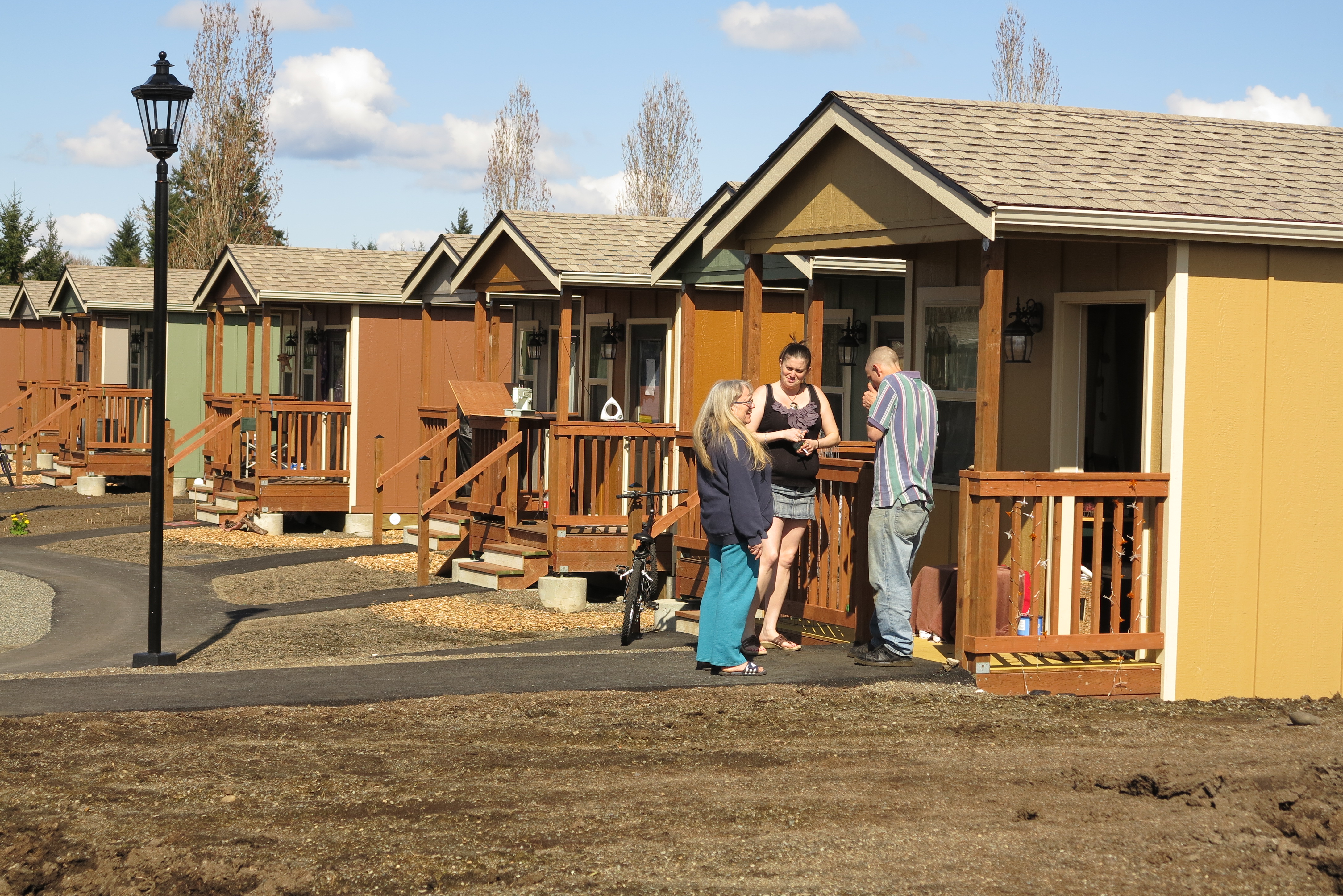 Although Panza serves as the legal owner and landlord, residents of Quixote Village have responsibilities and continue to play a significant role in governing the community. A full-time program and facilities manager and a resident advocate provide support for the community including property management, local transportation, and programmed activities, as well as individualized counseling that connects residents with education and employment opportunities, local mental and physical health services, and state and federal government aid. - Coverage