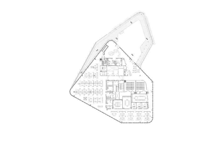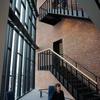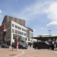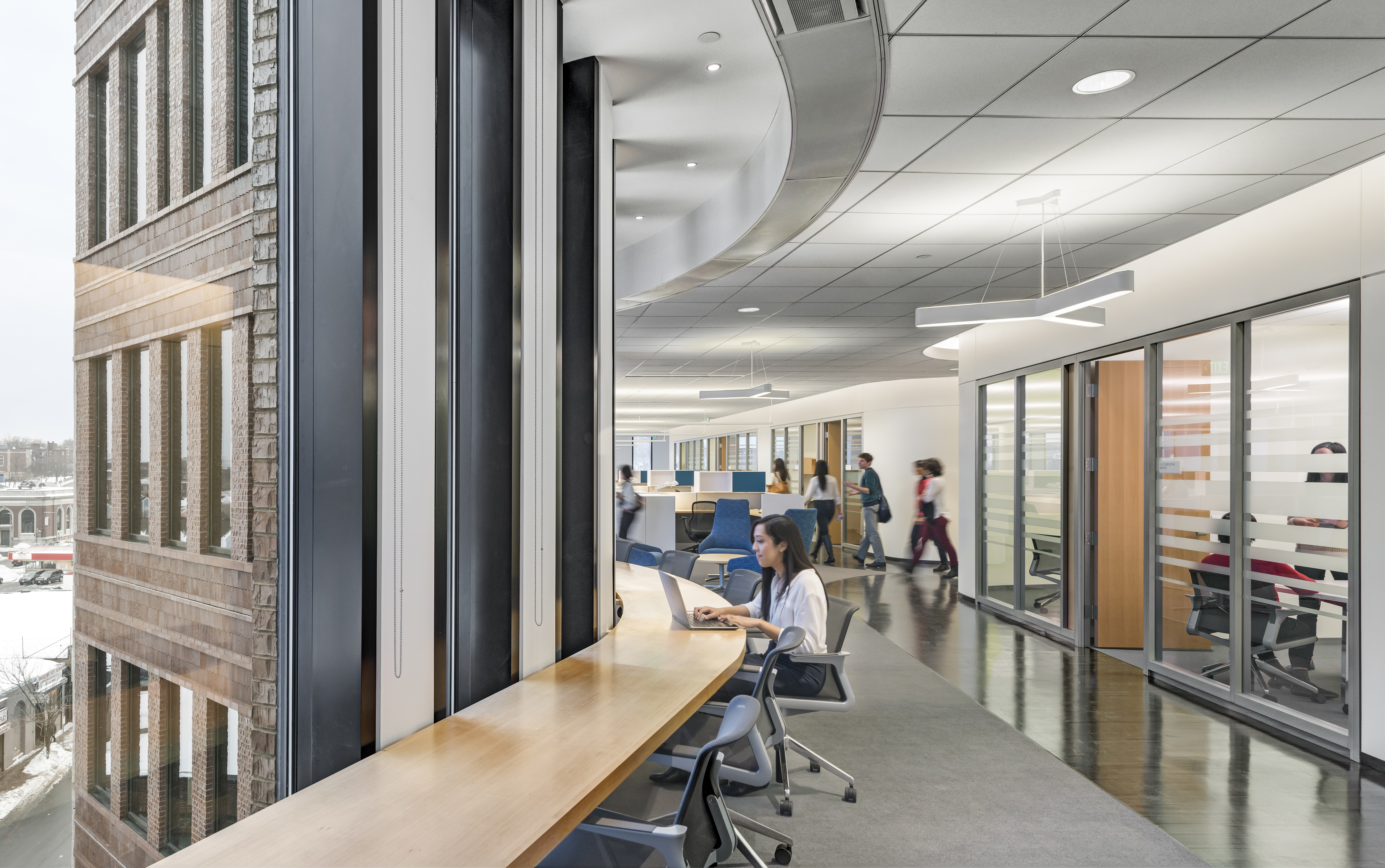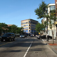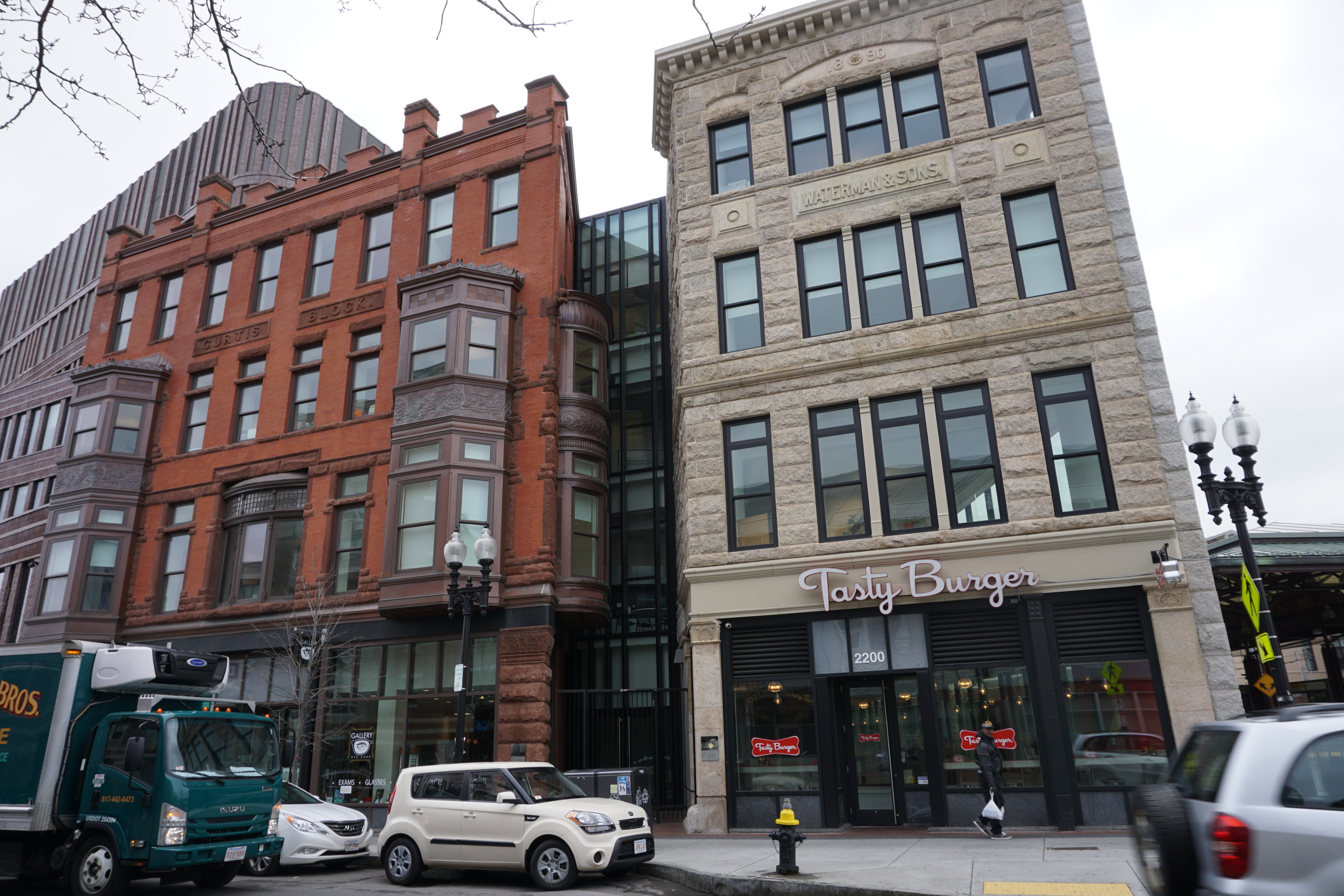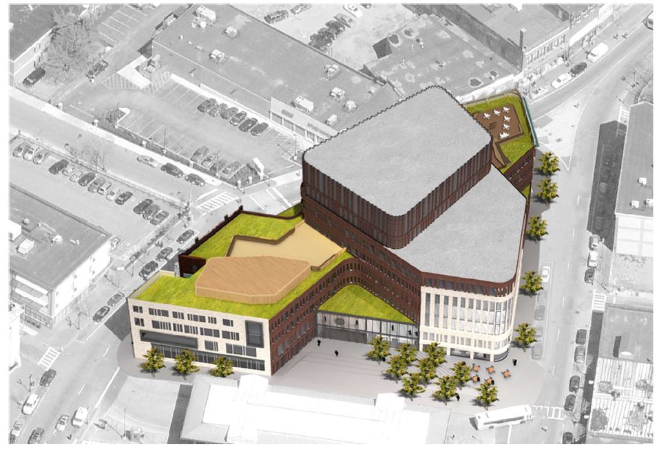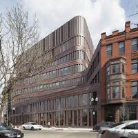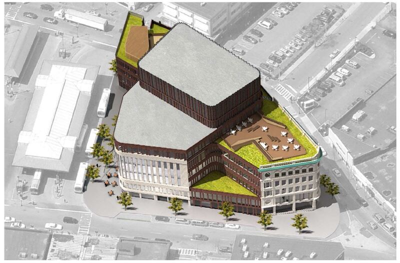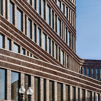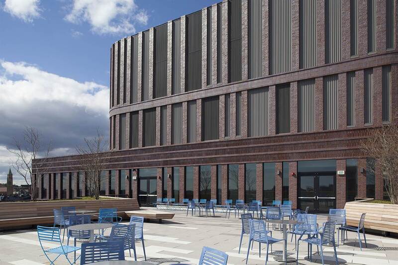 The 215,000 square foot complex incorporates the restoration of three historic facades, including the landmark Ferdinand building, coupled with new construction and capped with a green roof. The interior includes a light filled-atrium, offices, community meeting space, and first floor retail.
