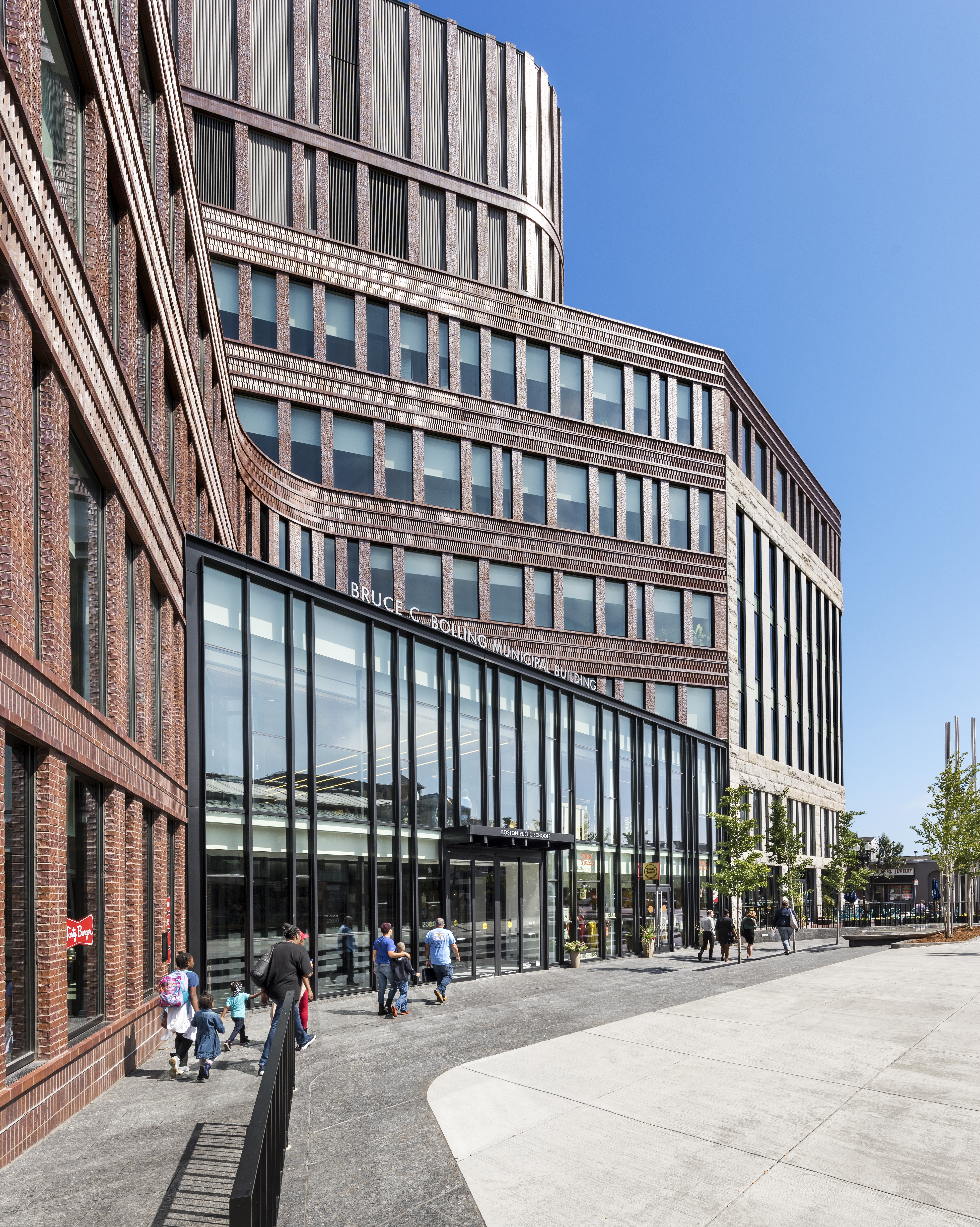 The Bruce C. Bolling Municipal Building in Boston, Massachusetts is a mixed-use facility integrating public school offices, retail, transit, and the community. Centrally located in Roxbury’s Dudley Square adjacent to a regional transit hub, it was created by the city of Boston to stimulate community development and investment.