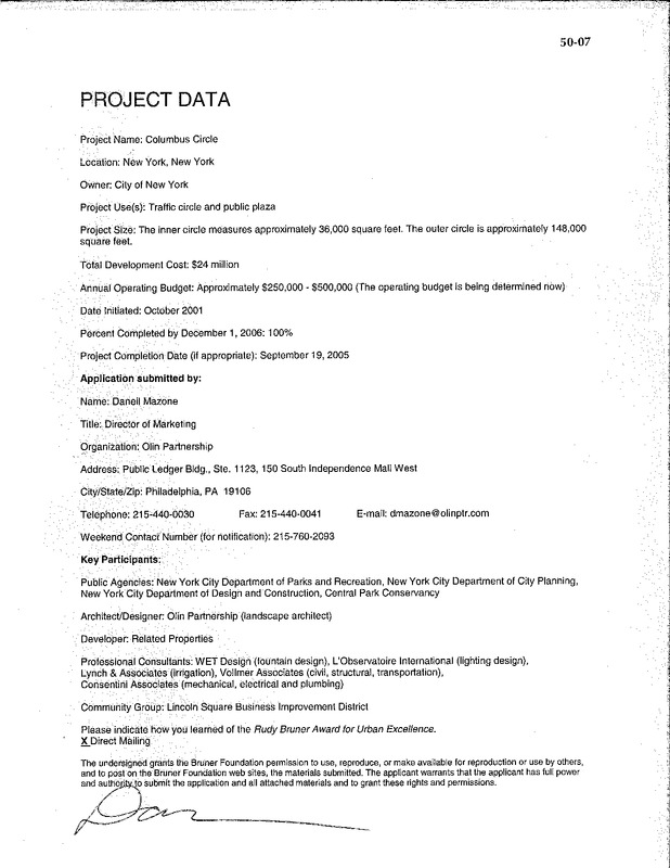 - Columbus Circle Public Plaza application